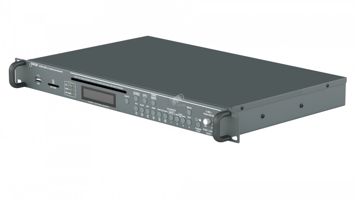 Проигрыватель с поддержкой CD, USB, SD-card, MP3 + тюнер с RDS. Применяется в составе любого комплекса звукового оборудования для осуществления музыкальной, служебной, рекламной, фоновой трансляции. Установка в стойку 19 дюймов.
