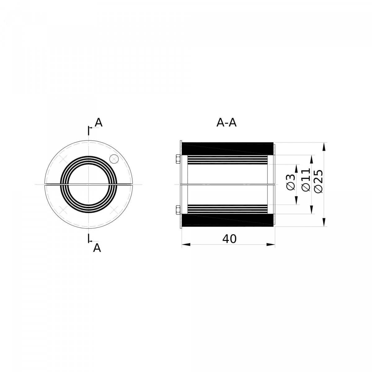 Проходка круглая, нержавеющая, D25х40 мм для кабелей D = 3-11 мм