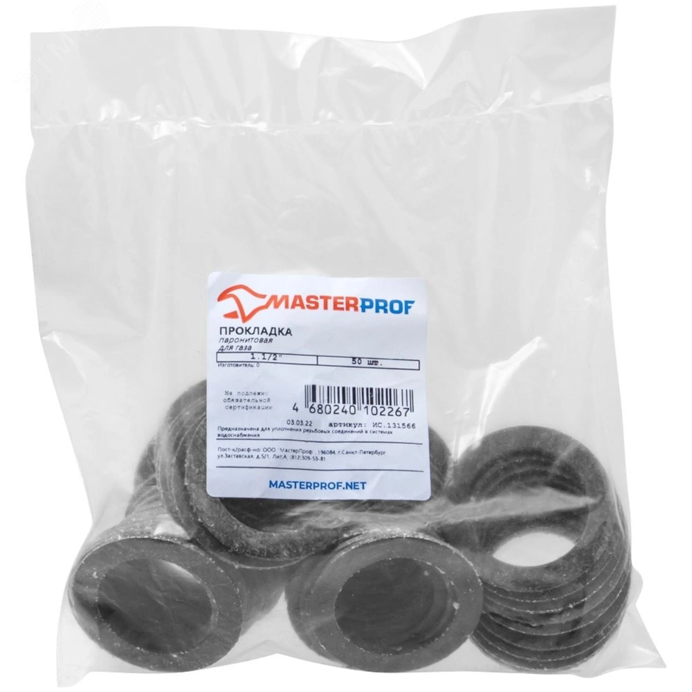 Паронитовая прокладка для газа MasterProf 1.1/2', 50 шт применяется для герметизации стыков в трубах отопления и водоснабжения, в насосах различного назначения, а также в системах газоснабжения. Одним из главных преимуществ прокладок из паронита является то, что они выдерживают давление до 64 бар и температуру до +450 градусов. Паронитовые прокладки очень устойчивы к резким перепадам давления и температуры в системе.