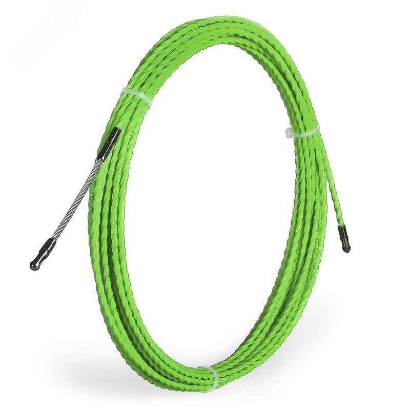 Материал - специальная композиция полиэстера. Цвет протяжки - зеленый. Тип наконечников - опрессованные стальные наконечники. Инновационная протяжка нового поколения, обладающая значительными преимуществами даже в сравнении с профессиональной протяжкой из стеклопрутка. Конструкция из спирально закрученной полиэстеровой нити обеспечивает уникальное сочетание механических свойств - прочности, гибкости, пластичности и высокой толкающей силы. Поверхность полиэстера обладает самым низким коэффициентом трения. Кроме того, благодаря спиральной конструкции уменьшается площадь контакта протяжки с поверхностью труб и проложенных кабелей. Высокая прочность протяжки на разрыв. Цветовая маркировка облегчает идентификацию. Особо гибкая и практически не ломающаяся протяжка. Легкая навигация и прохождение в тесном пространстве заполненных кабельных каналов увеличивает скорость монтажа. Диэлектрические свойства полимера гарантируют безопасную протяжку в каналах и трубах с кабелями под напряжением.