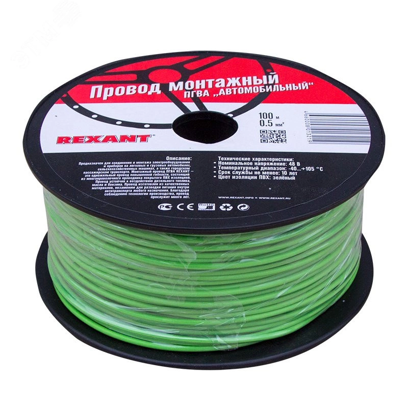 Провод ПГВА REXANT предназначен для гибкого соединения автотракторного электрооборудования и приборов с номинальным напряжением до 48 В, изготавливается для автомобильной проводки и элементов питания и управления. Состоит из многожильной токопроводящей жилы с поливинилхлоридной изоляцией.