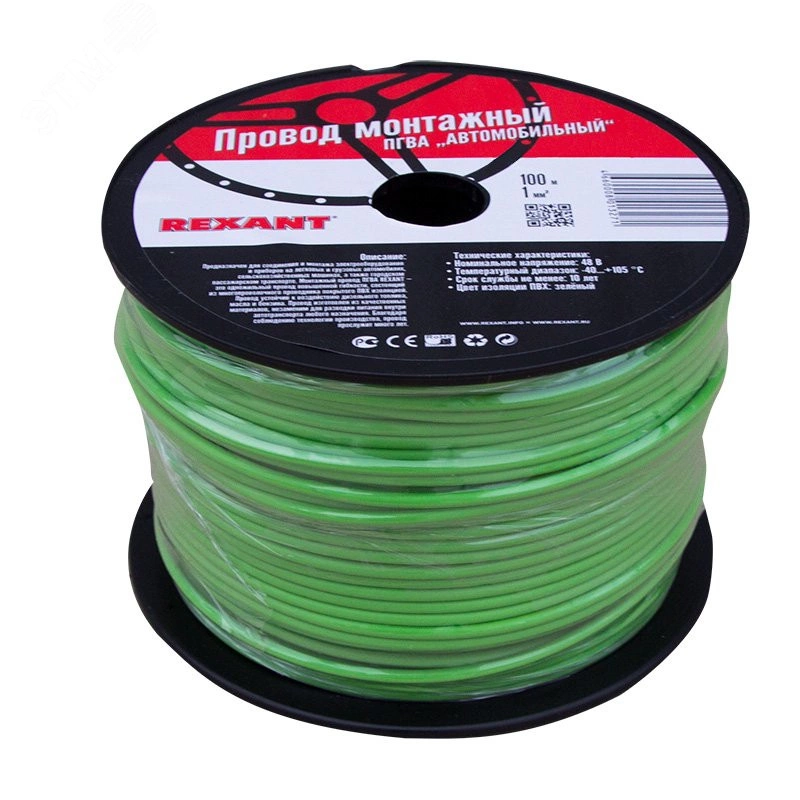 Провод ПГВА REXANT предназначен для гибкого соединения автотракторного электрооборудования и приборов с номинальным напряжением до 48 В, изготавливается для автомобильной проводки и элементов питания и управления. Состоит из многожильной токопроводящей жилы с поливинилхлоридной изоляцией.