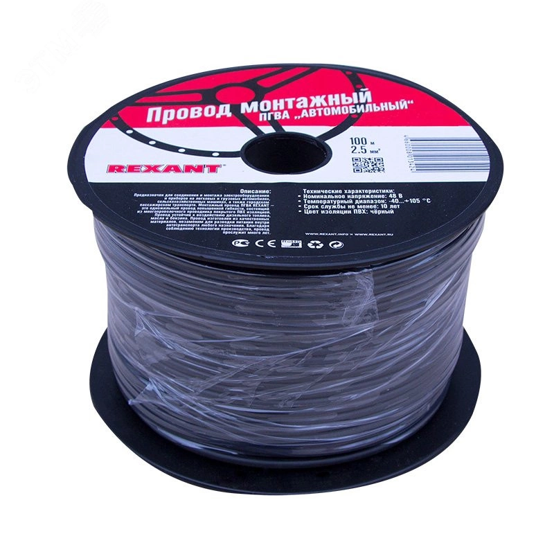 Провод ПГВА 1х2.50 мм2, черный, бухта 100 м,