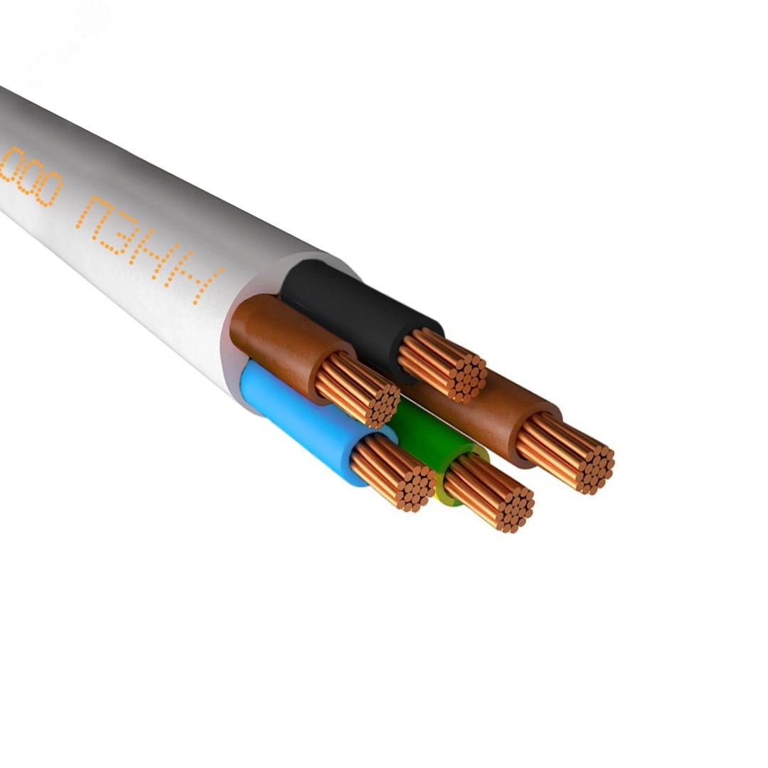 Провод ПВС 5х2,5(4х2,5+1х2,5) белый 100 м ТРТС