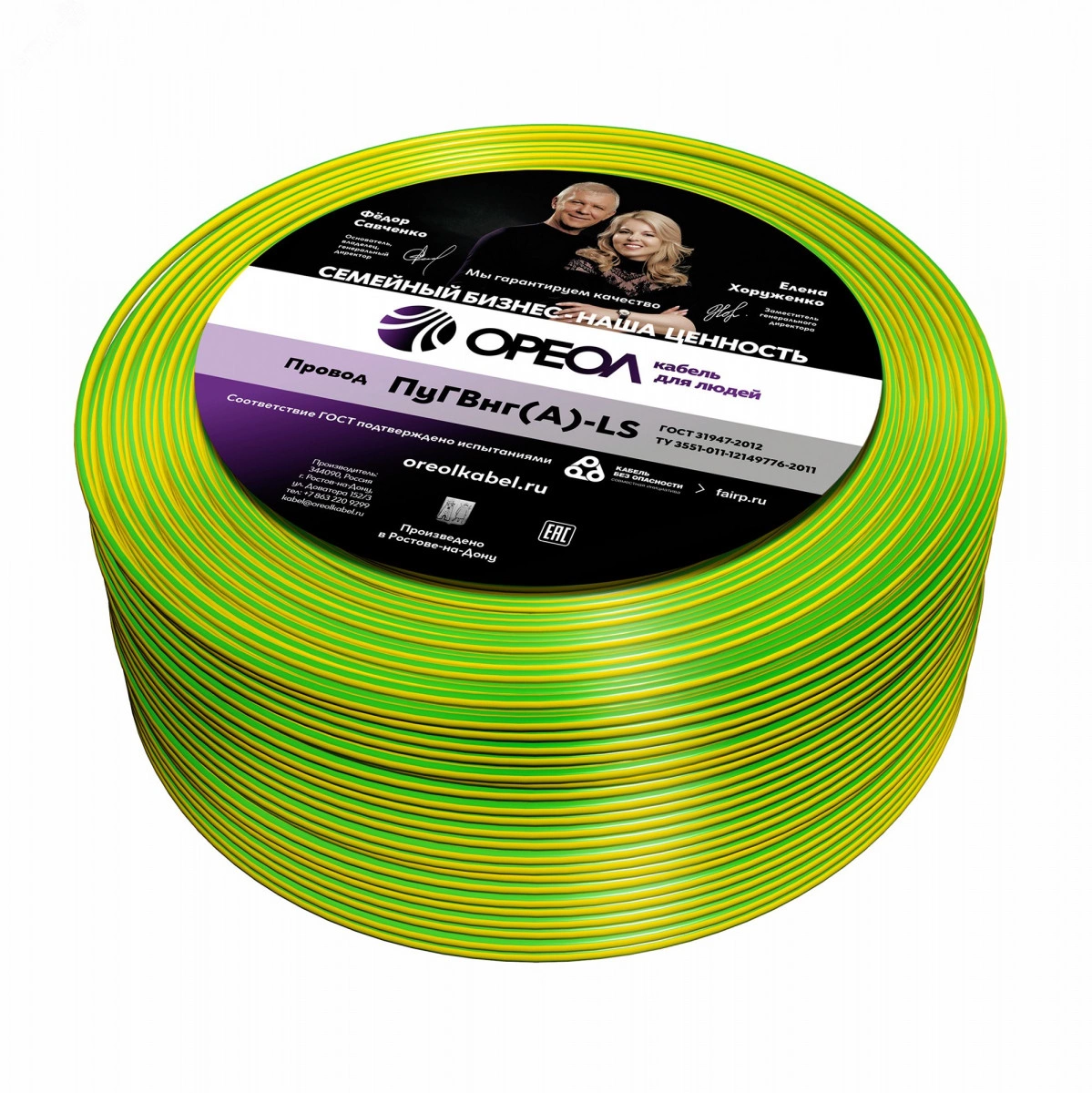 Провод силовой ПуГВ 1х35 желто-зеленый многопроволочный