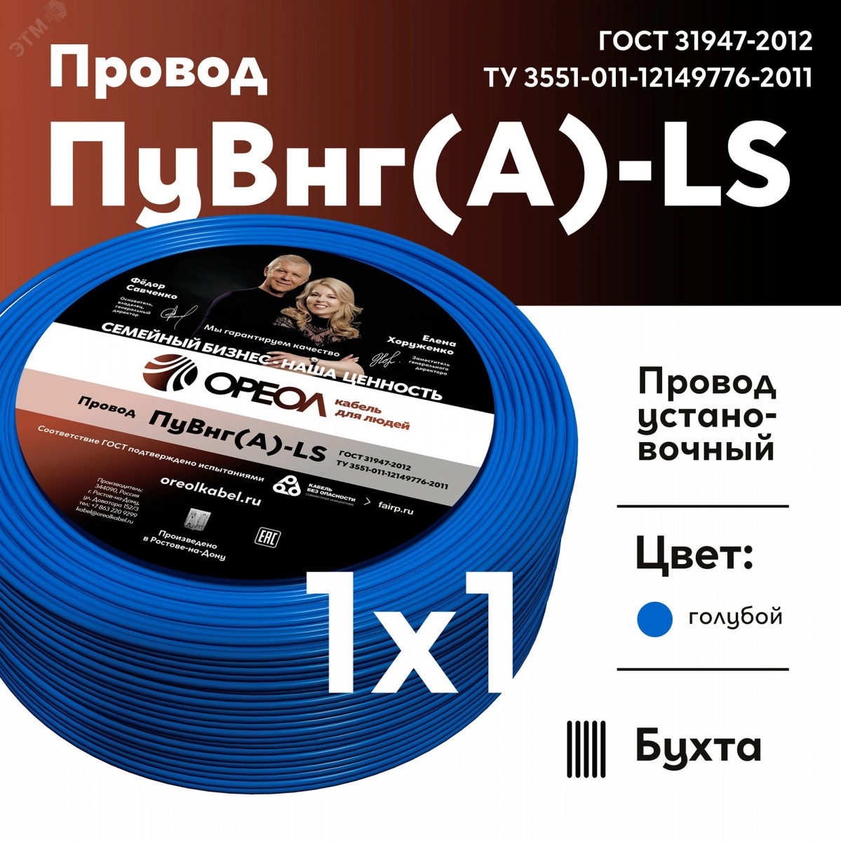 Провод силовой ПуВнг(А)-LS 1х1голубой ТРТС