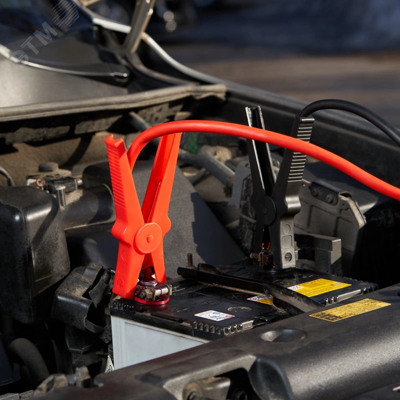 Провода вспомогательного запуска или провода прикуривания предназначены для пуска двигателя автомобиля с разряженной аккумуляторной батареей методом подачи стартового тока на клеммы от АКБ другого автомобиля (или от запасного полностью заряженного АКБ). Крепятся провода на клеммы с помощью специальных изолированных зажимов типа 'крокодил' с широким углом захвата, которые обеспечивают надежный контакт. Провода изолированы термопластиком, благодаря чему они легко гнутся и не теряют свою эластичность до температуры - 40С, а длина проводов позволяет дотянутся до аккумулятора автомобиля 'донора', даже при парковке в труднодоступных местах. Провода прикуривания допустимо использовать также для снегоходов и мотоциклов с разряженной батареей. )
