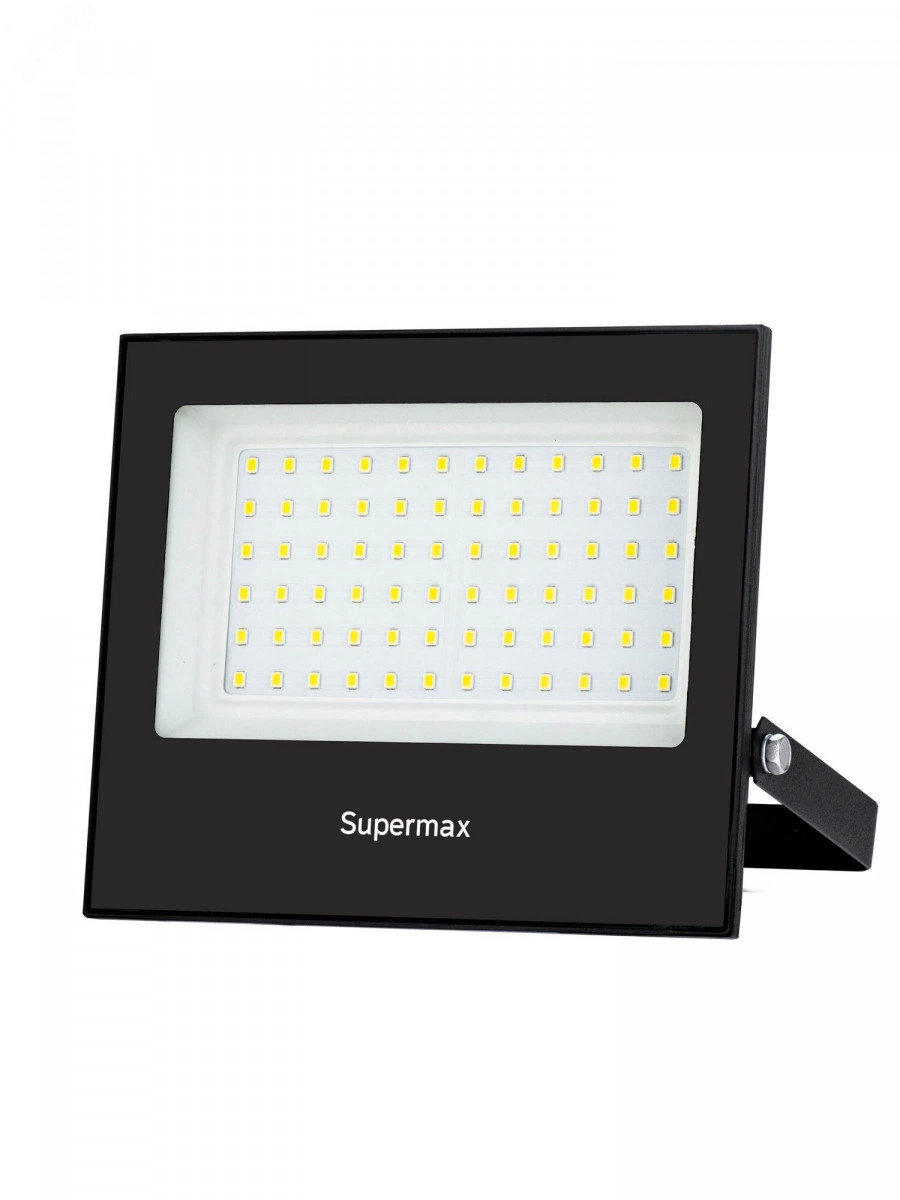 Светодиодный прожектор SUPERMAX обладает регулируемой лирой-креплением, которая позволяет поворачивать прожектор на 180 градусов, а также степенью защиты от пыли и влаги по стандарту IP65 - поэтому прожектор подходит для установки как в закрытом помещении, так и на улице. Мощность прожектора 70Вт, что является аналогом галогенового на 500 Вт, великолепная и практичная замена классическому прожектору. Служат до 40 000 часов, оттенок света – дневной белый 6500К, световой поток 7000Лм. 2 года гарантии.