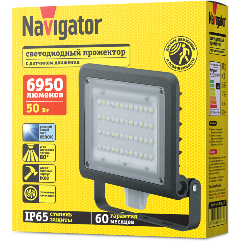 Полное описание: Прожектор светодиодный 80 680 NFL-03-50-6.5К-BL-LED 50Вт 6500К IP65 6950лм с датчиком черн. Navigator 80680
