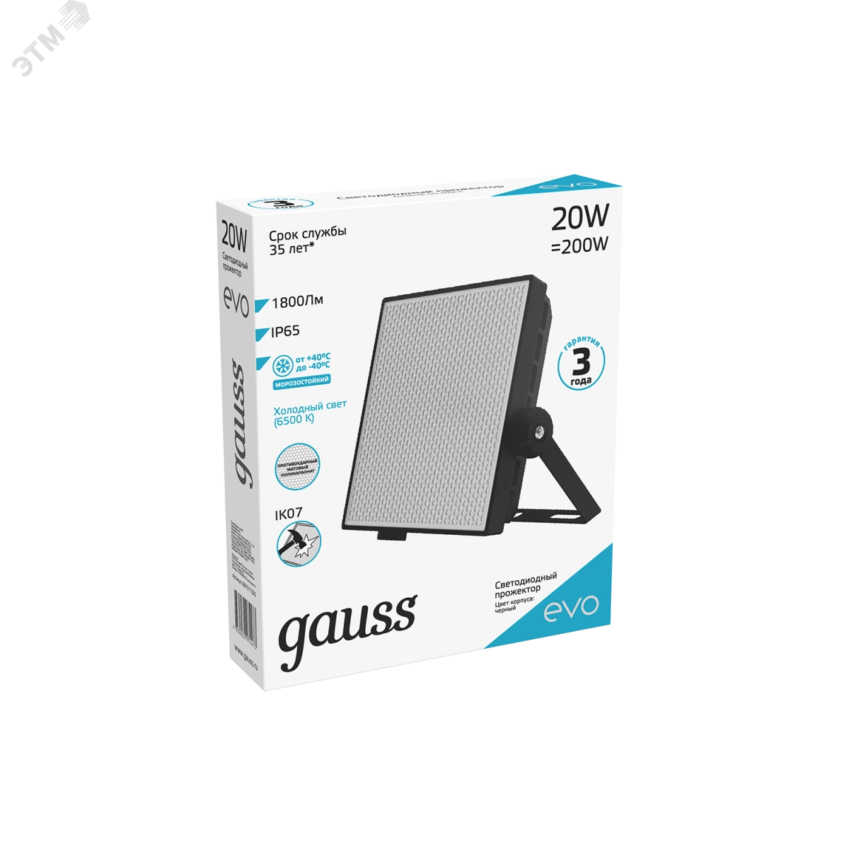 Светодиодные прожекторы Gauss EVO предназначены для освещения фасадов зданий, больших открытых пространств, промышленных объектов, частных загородных домов и спортивных площадок. Прожектор оснащен матовым рассеивателем из светостабилизированного поликарбоната, обеспечивающим равномерную мягкую засветку (угол излучения 110). Быстрая и легкая установка на поверхность осуществляется благодаря поворотному изогнутому кронштейну без его демонтажа. Прожектор подходит для замены световых приборов на традиционных галогенных источниках света с целью освещения общественных зон. Встроенный изолированный IC драйвер обеспечивает беспрерывную работу прожектора в широком диапазоне напряжения 100 - 240V и низкую пульсацию до 30%. Долгий срок службы без падения светового потока. Ударопрочный корпус (IK08) из высококачественного алюминиевого сплава, обладающего высокими теплопроводными характеристиками.