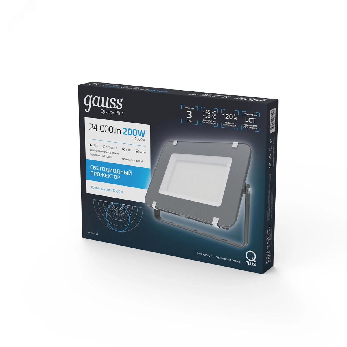 Прожектор светодиодный ДО 200 Вт 6500К 21000 лм 175-265В IP65 290х32х400мм Алюминий матрированное закаленное стекло Qplus Gauss