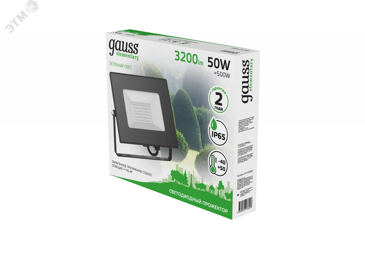 Прожекторы Gauss Elementary с зеленым свечением. Универсальный и незаменимый прожектор Gauss Elementary, созданный для экстерьерной общей подсветки зданий и сооружений, а также ландшафтных объектов, теперь доступен и с зеленым оттенком свечения. Материалы изготовления и конструкция прожекторов обеспечивают их высокую механическую прочность и полную защиту от пыли и влаги по классу IP65, они способны выдержать до - 40 градусов. Прожектор имеет широкую линейку мощностей от 10W до 50W. Срок службы данных прожекторов более 35 000 часов, при этом на устройство предоставляется гарантия 2 года. Экономьте электроэнергию на ваших объектах и создавайте неповторимую атмосферу за счет оригинальной зеленой подсветки