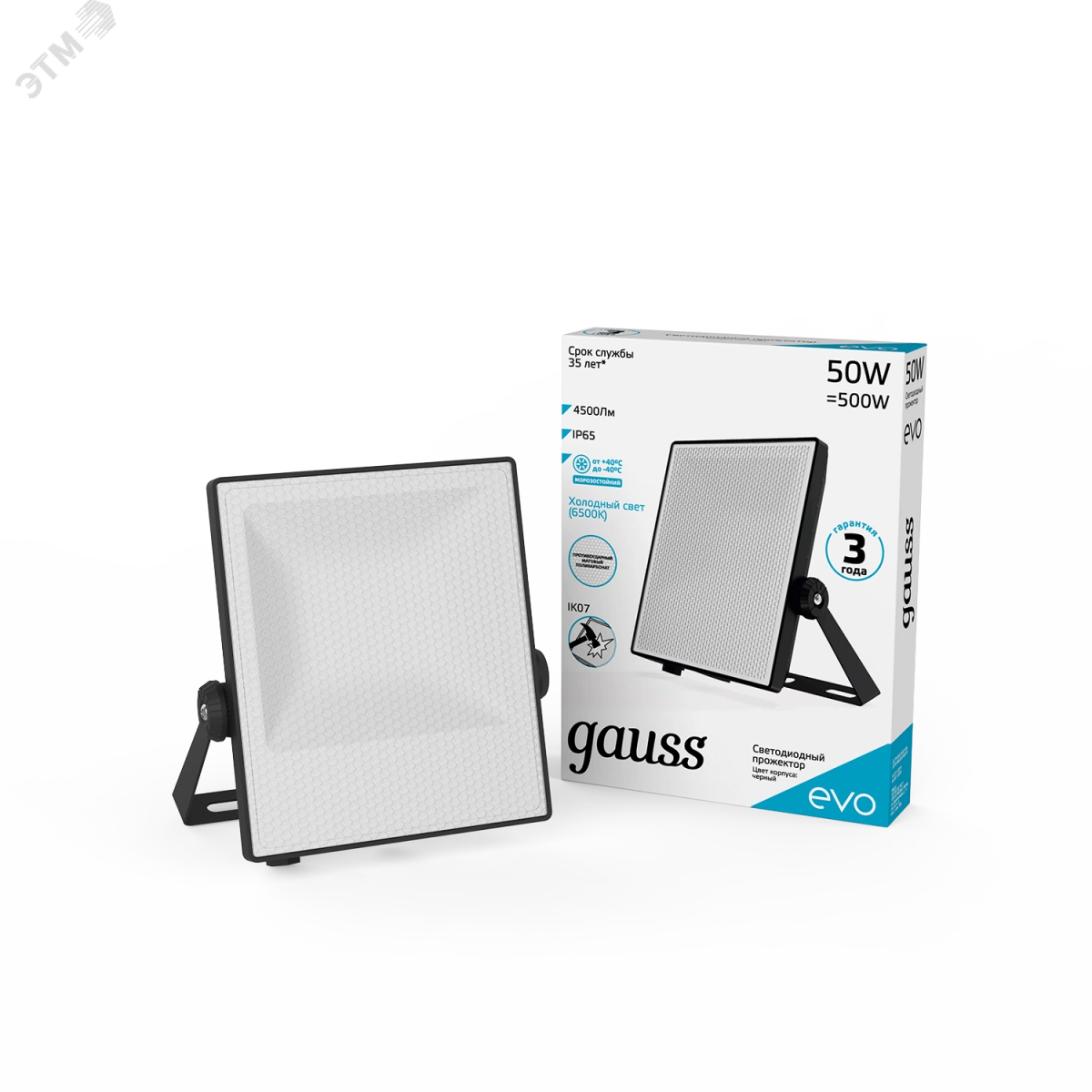 Прожектор светодиодный ДО-50 Вт 4500 Лм 6500К IP65 IK07 черный EVO Gauss