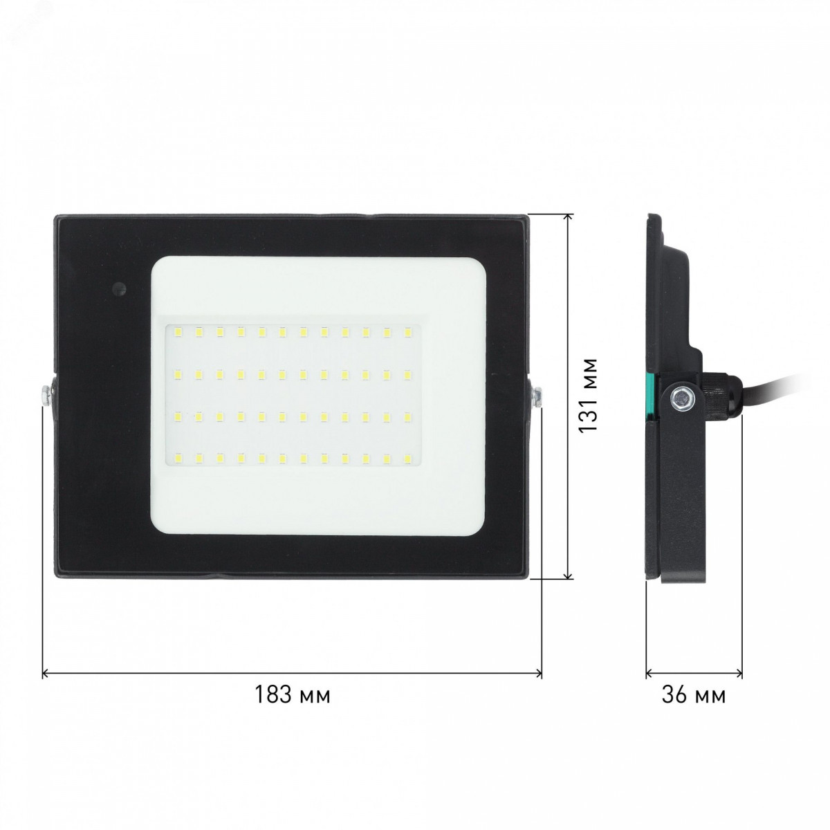 Прожектор светодиодный ДО-50W LPR-041-1-65K-050 50Вт 3500Лм 6500К датчик движения нерегулируемый 183x131x36