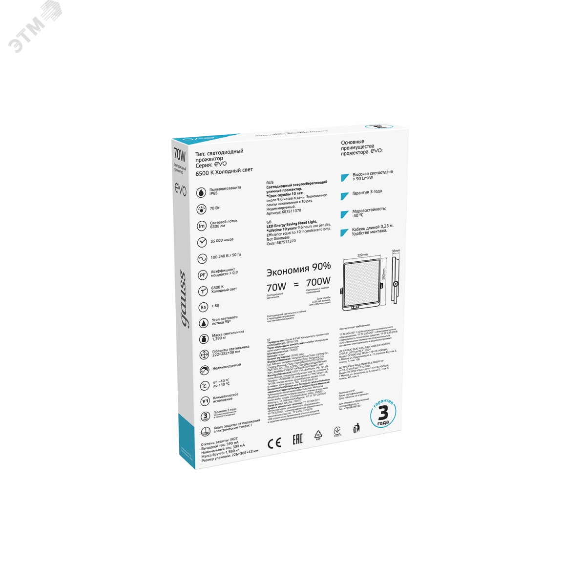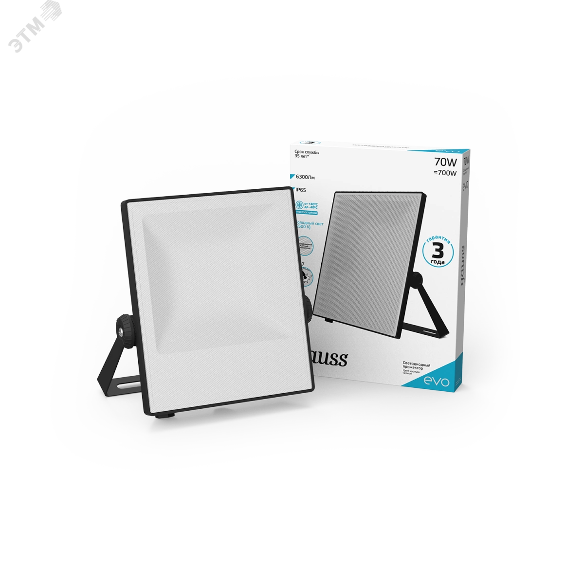 Прожектор светодиодный ДО-70 Вт 6300 Лм 6500К IP65 IK07 черный EVO Gauss
