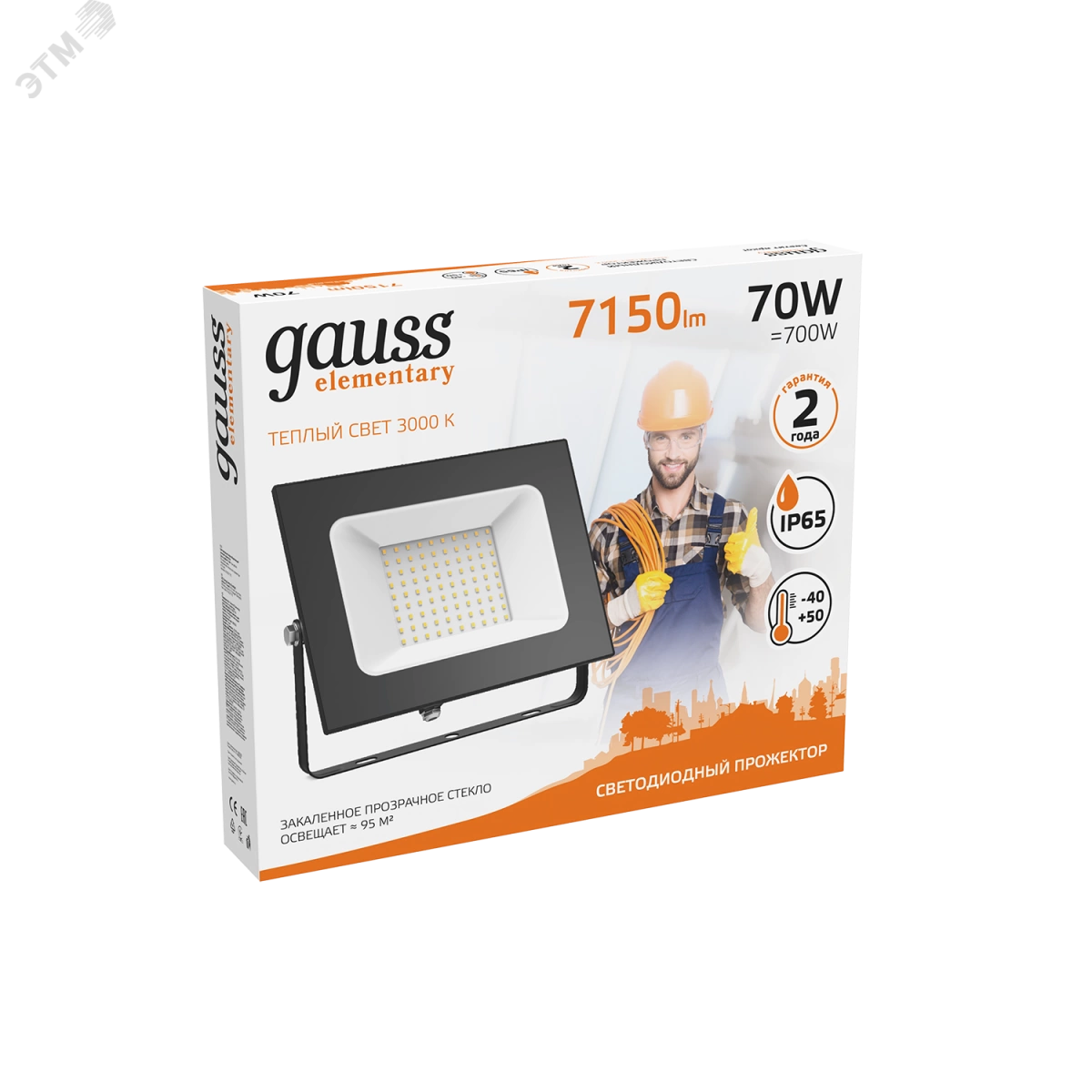 Прожектор светодиодный ДО-70 Вт 7150 Лм 3000К IP65 175-265 В черный LED Elementary Gauss