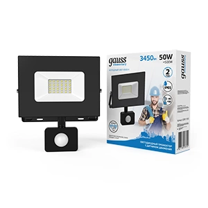 Прожектор светодиодный Elementary-S 50Вт 6500К 3450лм IP65 175-265В черн. с датчиком движения Gauss 628511350