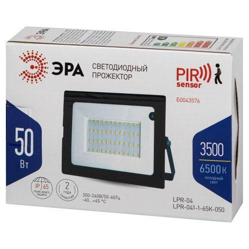 Прожектор светодиодный LPR-041-1-65K-050 50Вт 6500К 3500лм IP65 183х131х36 уличный датчик движ. нерегулир. Эра Б0043576