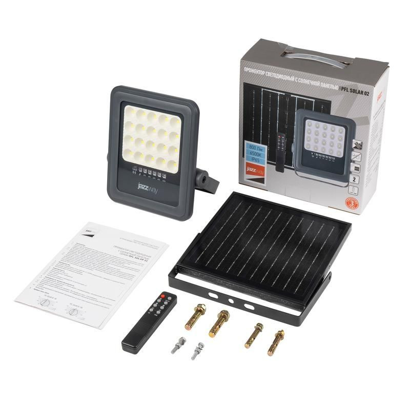 Прожектор светодиодный PFL SOLAR 02 50 6500К GR IP65 ДО с солнечн. панелью и пультом Pro+ JazzWay 5058460