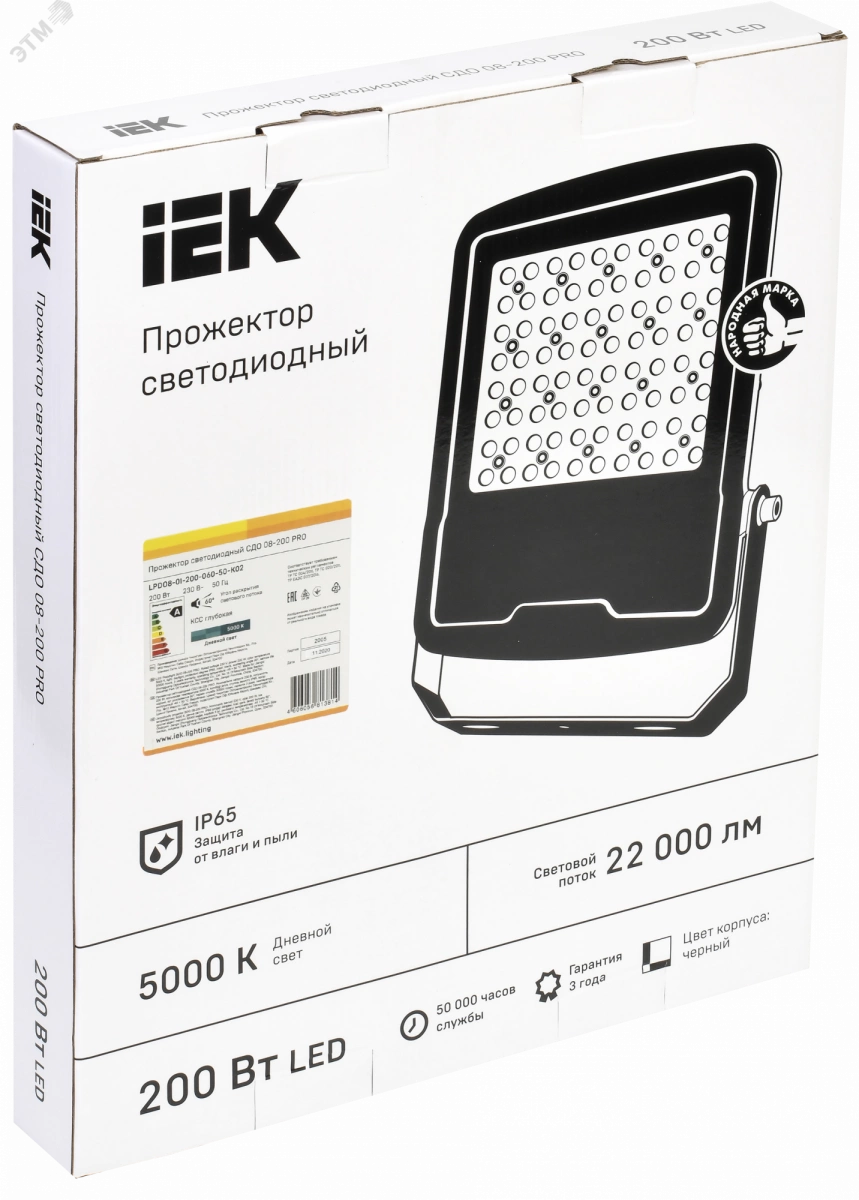 Прожектор светодиодный СДО 08-200 PRO 60град 5000К IP65 черный IEK