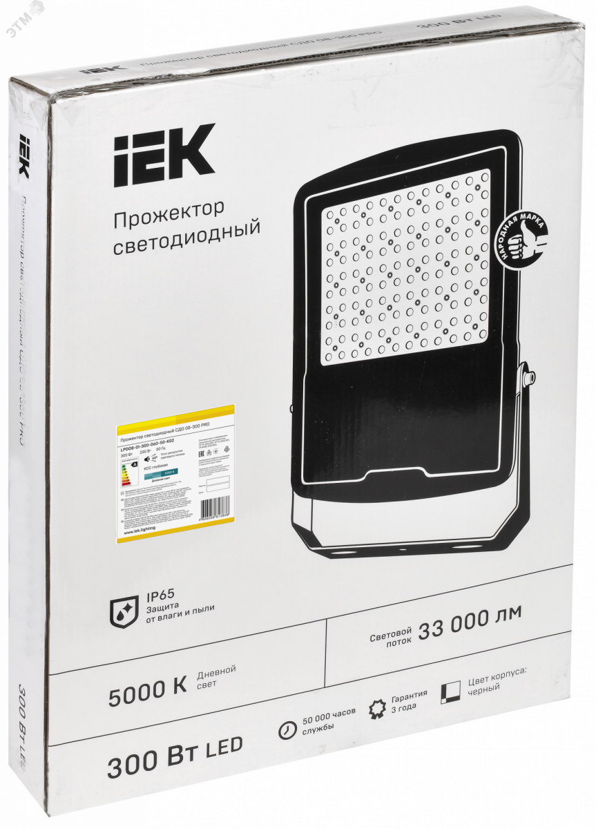 Прожектор светодиодный СДО 08-300 PRO 40х90град 5000К IP65 черный IEK