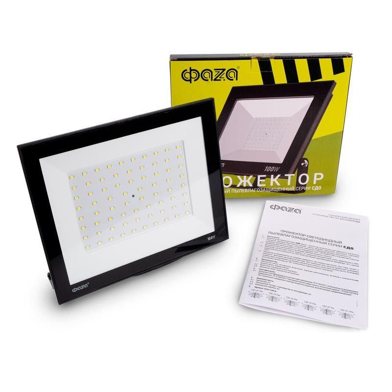 Полное описание: Прожектор светодиодный СДО-20 100Вт 6500К IP65 230В BL ДО прозр. закален. стекло ФАZА 5047341