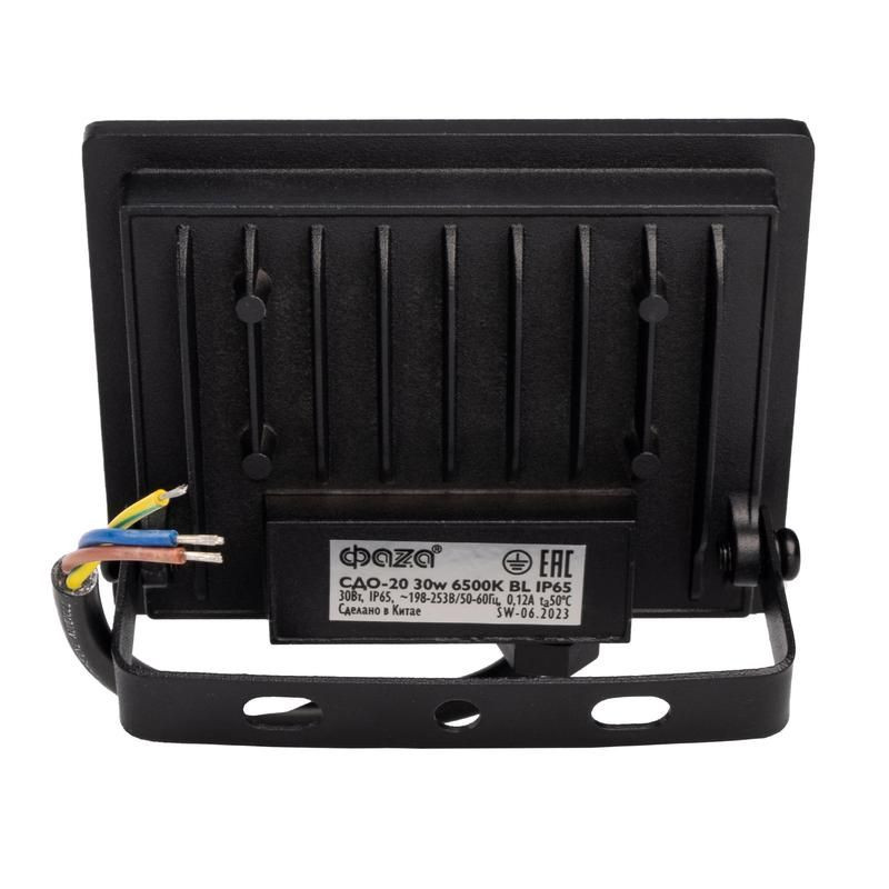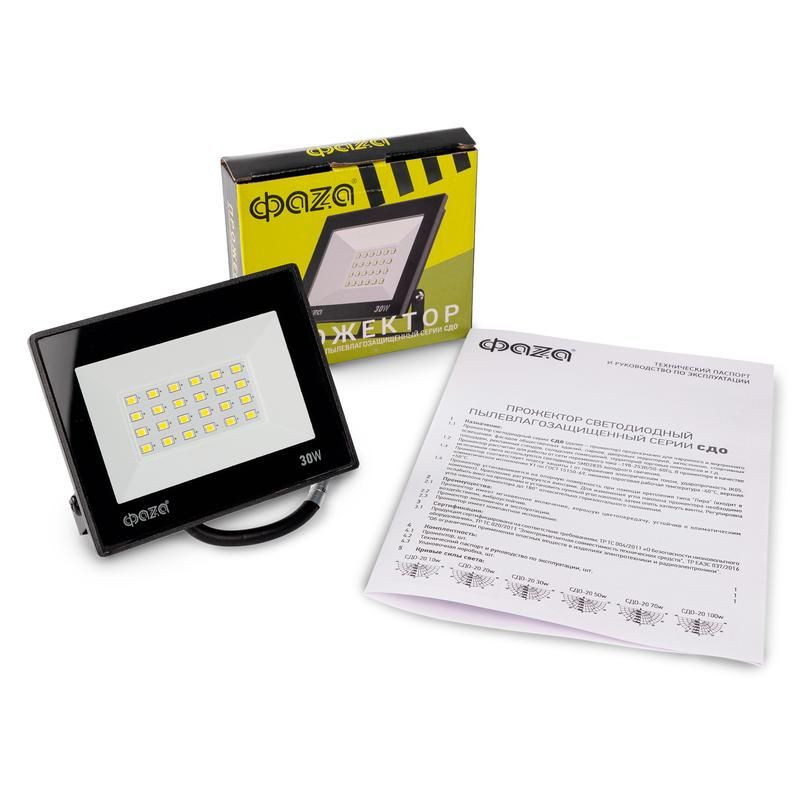 Полное описание: Прожектор светодиодный СДО-20 30Вт 6500К IP65 230В BL ДО прозр. закален. стекло ФАZА 5047280