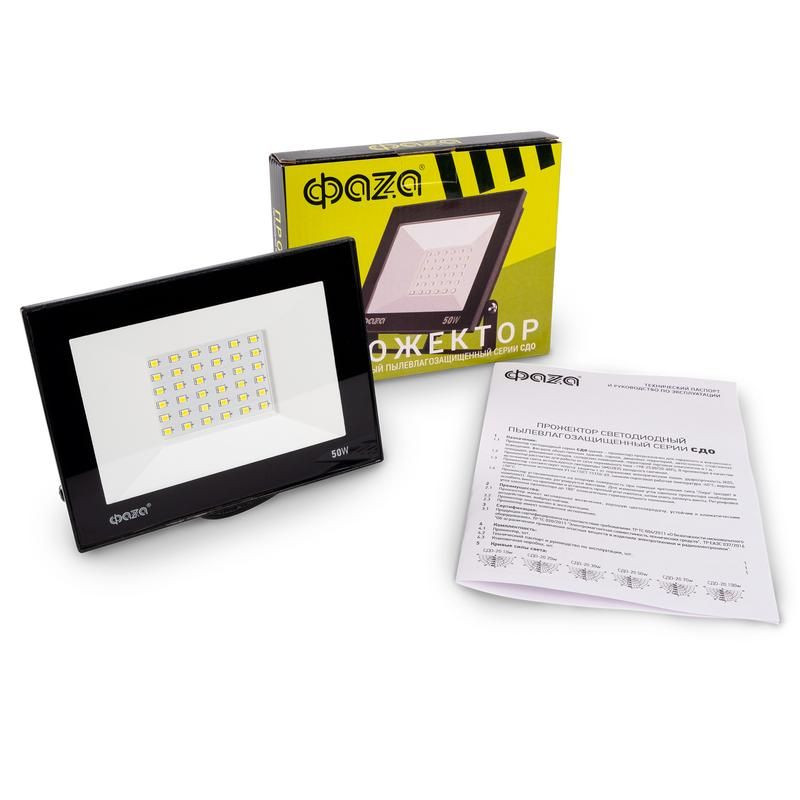 Полное описание: Прожектор светодиодный СДО-20 50Вт 6500К IP65 230В BL ДО прозр. закален. стекло ФАZА 5047303