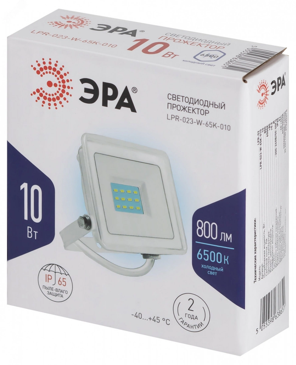 Прожектор светодиодный уличный LPR-023-W-65K-010 10Вт 6500K 800Лм IP65 белый ЭРА