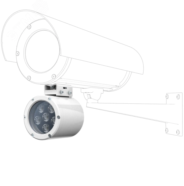 Прожектор белого света во взрывозащищенном исполнении используется для освещения объектов при низкой освещенности или в темноте, обеспечивая обзор на расстоянии до 35 метров при уровне освещения 1 люкс. Угол освещения составляет 45 градусов. Прожектор включается автоматически при уровне освещенности 10 люкс +/- 5 люкс, цветовая температура - 3000-3200 K. Питание осуществляется от источника постоянного тока 12 вольт. Потребляемая мощность во время освещения составляет 7,5 ватт, в режиме ожидания - 0,25 ватт, а при включенном нагревателе - от 3 до 10,5 ватт во время освещения и от 3,25 во время ожидания. Прожектор работает в температурном диапазоне от -60 до +50 градусов по Цельсию и имеет степень защиты IP66 и IP68. Он отвечает требованиям взрывозащиты 1Ex db IIC T6 Gb X / Ex tb IIIC T80градусов Цельсия Db X.