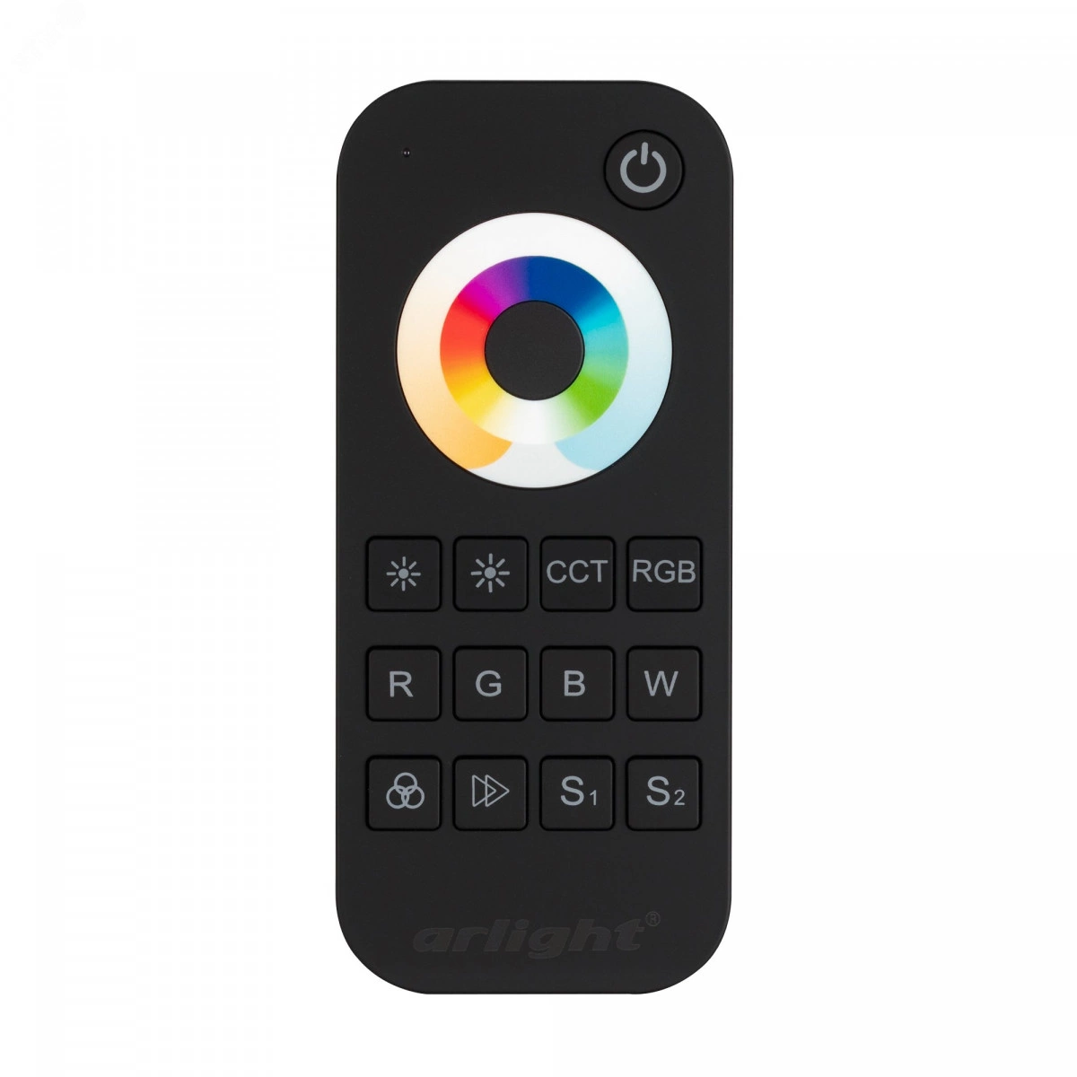 Кнопочный радиопульт с сенсорным кольцом 2.4 ГГц черного цвета для управления DIM/MIX/RGB/RGBW источниками света. 1 зона управления, 2 слота памяти пользовательских настроек, выбор цвета и типа управления с помощью сенсорного кольца. Питание 3VDC (AAA*2). Габариты 122x53x18 мм. Управляет контроллерами и панелями серии SMART (поставляются отдельно). Настенные держатели приобретаются отдельно (см. аксессуары).