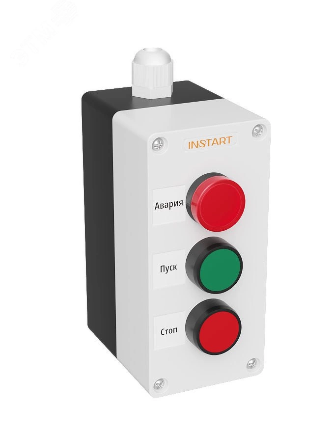 Пульт управления (ПУ) – предназначен для коммутации электрических цепей управления переменного тока напряжением до 220 В частоты 50 и 60 Гц и постоянного тока напряжением до 50 В, для дистанционной подачи сигналов управления. Применяется для дистанционного управления различными механизмами и электрическими машинами. ПУ-3-530 – пульт управления, оснащённый кнопками пуск, стоп и индикацией, в виде красной лампы 220В. Предназначен для управления пуском, остановом электродвигателя, индикации аварии преобразователя частоты. Совместимость - Преобразователи частоты серии SDI, MCI, FCI, LCI, VCI. Устройства плавного пуска серии SSI, SBI.