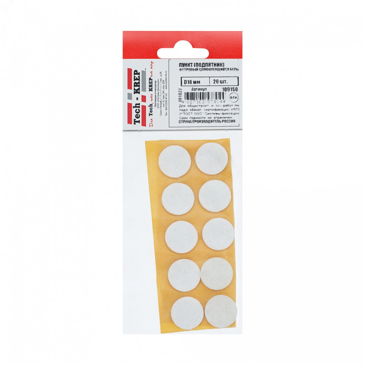Пункт фетр. самокл. D18 мм белый (20 шт) - пакет Tech-Krep