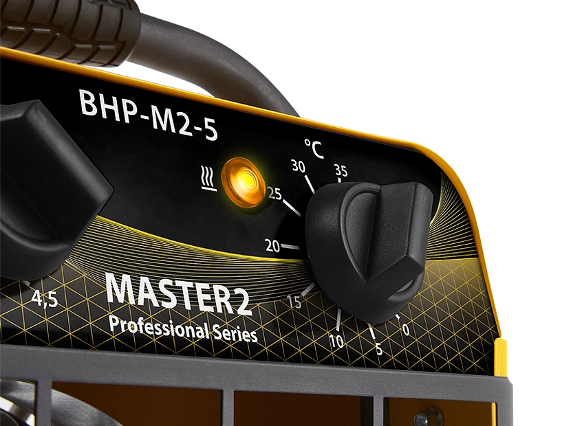 В приборах серии применяются электрические компоненты с большим ресурсом работы, высокоточный капиллярный терморегулятор и защитный термостат с функцией блокировки автоматического включения в случае перегрева. Тепловентиляторы Master 2 предназначены для непрерывной работы 24/7 в самых суровых условиях эксплуатации, даже при отрицательных температурах до -30°С. Новая опора-трансформер с увеличенным «дорожным просветом» (тепловентилятор можно ставить на строительный мусор и в грязь) или возможностью наклона.