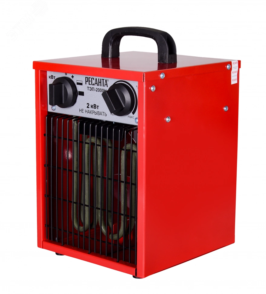 Тепловая электрическая пушка РЕСАНТА ТЭП-2000Н предназначена для вентиляции и обогрева жилых и производственных помещений, складов, гаражей, а также для обогрева и сушки в строительстве. Прибор относится к тепловым пушкам компактного типа. Нагревательный элемент - трубчатый. Данная модель рассчитана на питание от электросети переменного тока частотой 50 Гц, номинальным напряжением 220-230В (однофазная). Устанавливается на полу. Обогреватель оснащен регулировкой режимов работы (мощности) - Режим 1 - 25 Вт (в этом режиме работает только вентилятор, функция обогрева отключена). Режим 2 - 1000 Вт. Режим 3 - 2000 Вт.
