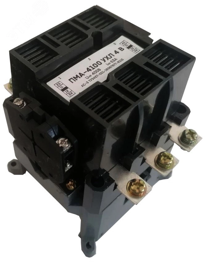 Пускатель ПМА-4100 УХЛ4 В, 170В/50Гц, 2з+2р, 63А, без реле, IP00 (ЭТК) предназначен для дистанционного пуска, остановки и реверсирования асинхронных электродвигателей с коротко-замкнутым ротором.