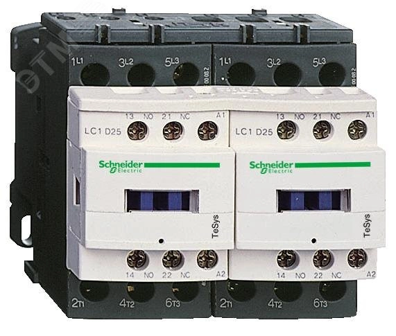 Реверсивный контактор для управления электродвигателя и активной нагрузкой. Цепь управления 24В DC.