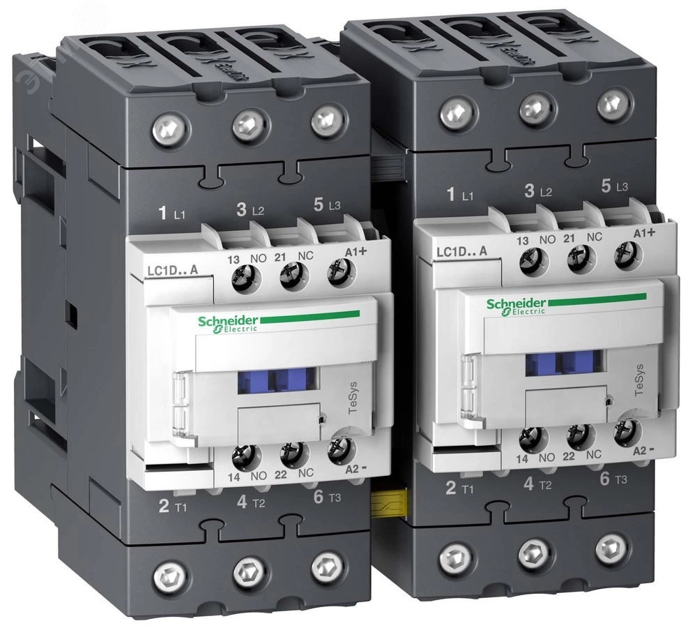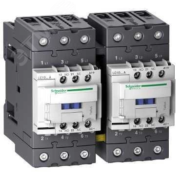 Реверсивный контактор для управления электродвигателя и активной нагрузкой. Цепь управления 24В DC.