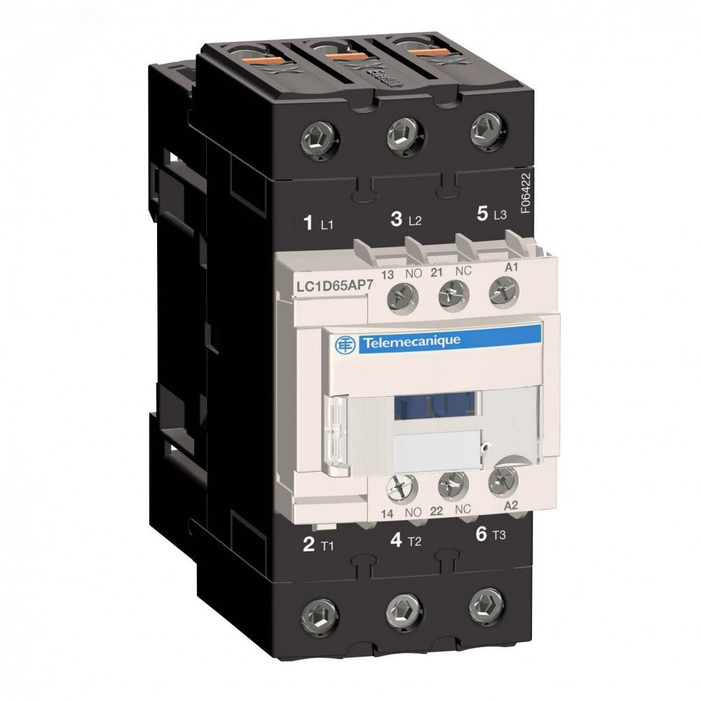 Контактор серии TeSys LC1D Schneider Electric, 3P (3НО), номинальный ток 65 А (AC-3), напряжение управления 230 В пер. тока 50/60 Гц, доп.контакты - 1НЗ+1НО, монтаж - на панель или DIN-рейку, присоединения - разъемы EverLink + винтовые зажимы. Контакторы серии TeSys D имеют высокую надежность, длительную механическую и электрическую износостойкость, а также самый широкий спектр аксессуаров для всех типов применения.
