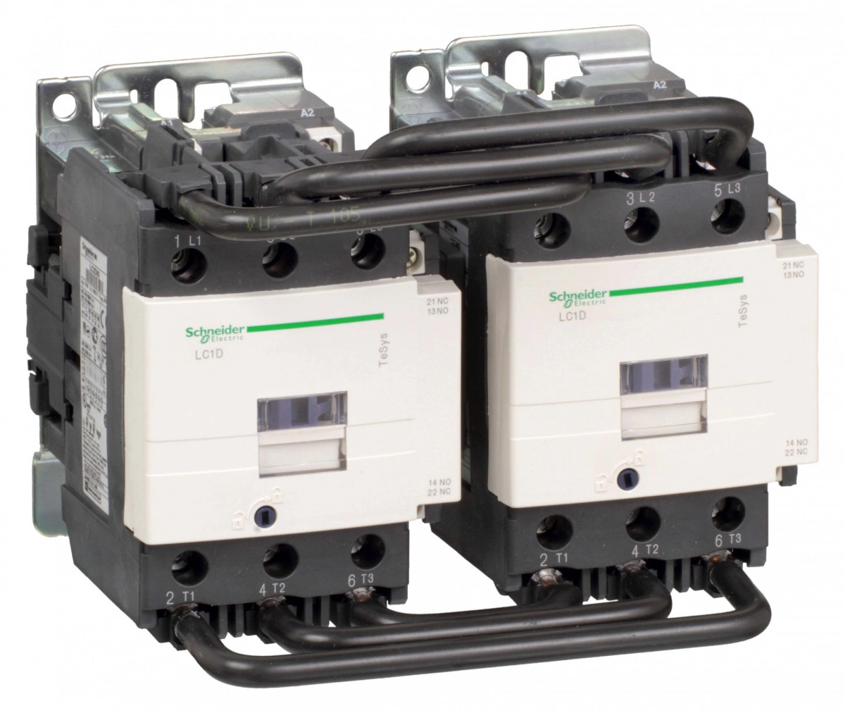 Реверсивный контактор для управления электродвигателя и активной нагрузкой. Цепь управления 230В AC.
