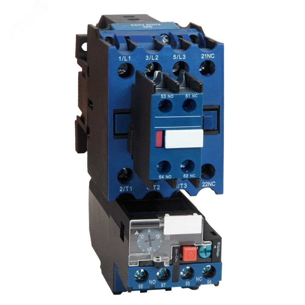 Контактор с катушкой управления переменным током напряжением 220 В на номинальный ток 25 А. Пускатели предназначены для управления (пуск, остановка) и защиты от перегрузок электродвигателей переменного тока. Применяются в системах управления грузоподъемными механизмами (лифты, краны и т.д.), вентиляторами, насосами, тепловыми завесами, печами, станками, освещением, в системах автоматического ввода резерва (АВР).