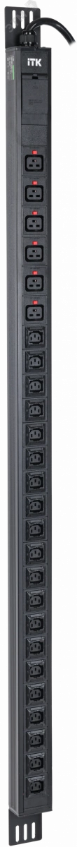Вертикальный комбинированный PDU ITK включает в себя розетки двух типов - 13 розеток C13 и 4 розетки C19 – что позволяет подключать с их помощью различное оборудование.PDU ITK изготавливается из высококачественных термостойких материалов и пластмасс, оснащается 3-х метровым кабелем электропитания с вилкой промышленного назначения IEC60309.PDU ITK прекрасно справляется с задачей по электроснабжению сетевого оборудования в шкафах и стойках, а также с требованием защиты от токов короткого замыкания и перенапряжения.PDU ITK соответствует российским и международным стандартам качества и устанавливается с помощью кронштейнов, при этом положение кронштейнов можно менять.