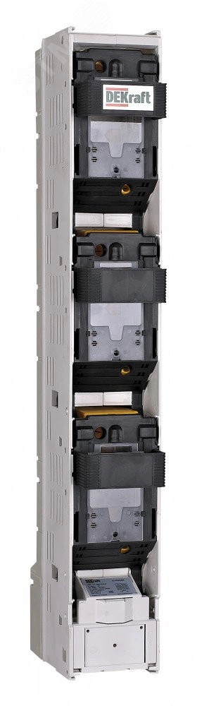 Предохранитель-выключатель-разъединитель вертикальный (ПВР-101) предназначен для включения и отключения нагрузки с видимым разрывом в сетях трехфазного переменного тока до 250 А частотой 50/60 Гц и номинальным напряжением до 690 В. Пофазное отключение, монтаж на шины.