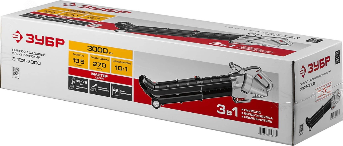 Пылесос садовый (воздуходувка) электрический, мусоросборник 45л, 13.5 м3/мин, 3000 Вт