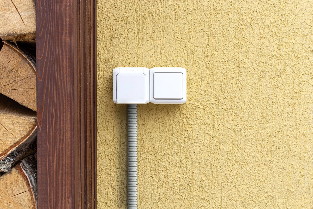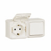 Quteo Блок: Выключатель + розетка с заземлением со шторками наружный белый IP44
