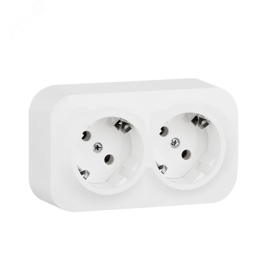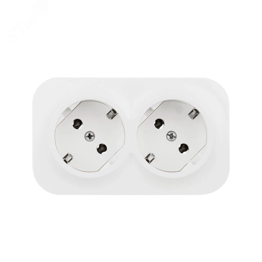 Полное описание: Quteo Розетка двойная с заземлением со шторками наружная белая