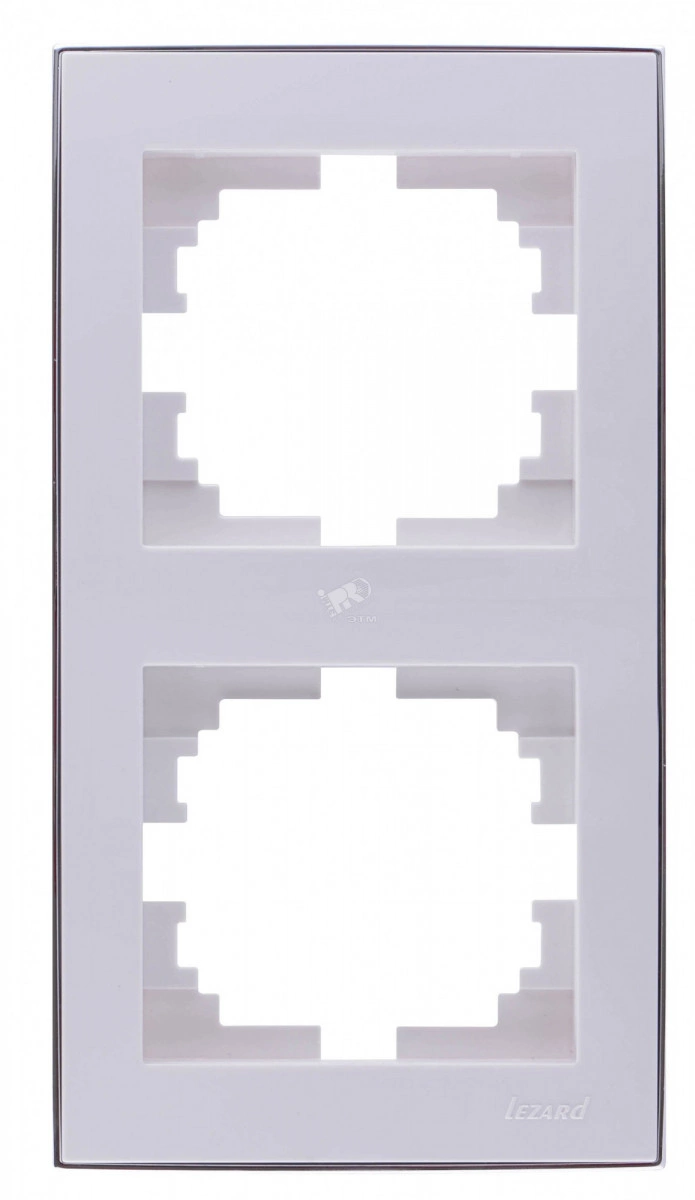 RAIN Рамка 2 поста вертикальная белая с боковой вставкой хром