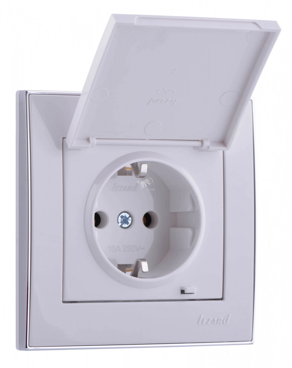 RAIN Розетка с заземлением с крышкой керамика белая с боковой вставкой хром