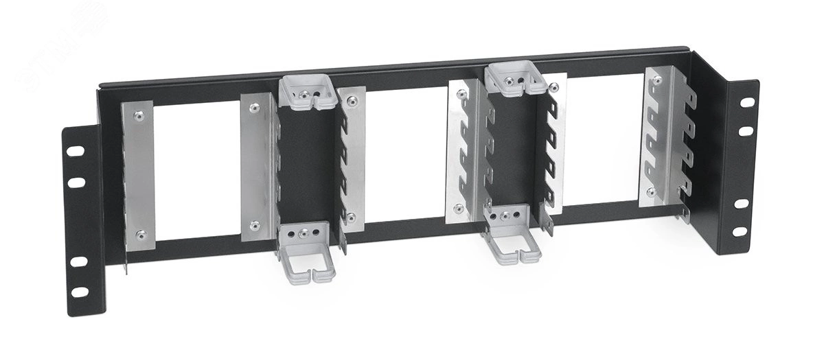 Рама 19 дюймов с монтажными хомутами, предназначена для установки на нее 15-ти плинтов типа KRONE. Используется для установки в шкафы и стойки стандарта 19 дюймов.