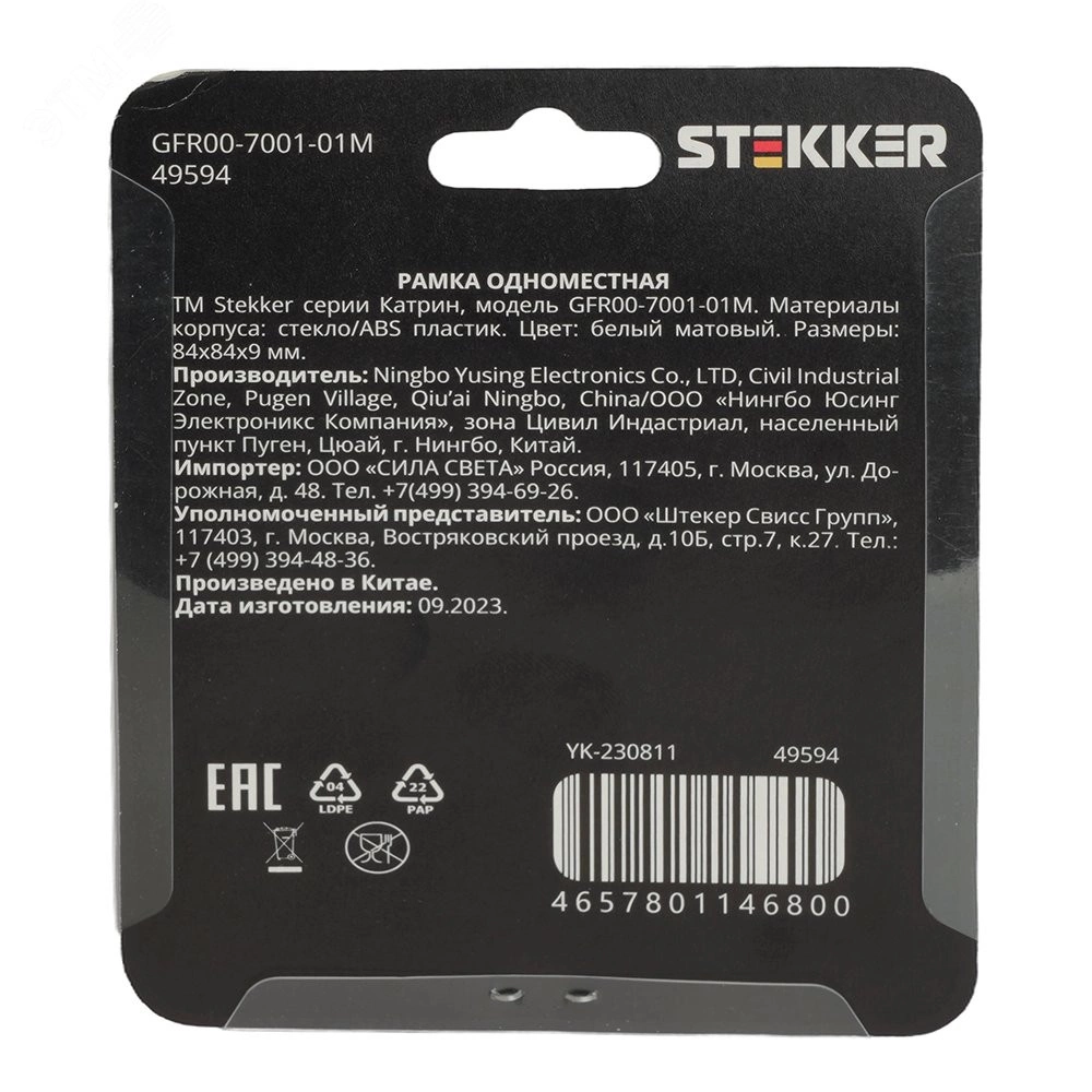 Рамка STEKKER GFR00-7001-01 на 1 пост. Материал: Стекло/ABS пластик, цвет белый, размер 84*84*9мм. Толщина стекла рамок составляет 3 мм, что придает рамке легкость и элегантность. Все пластиковые подложки выполнены в цвет стекла. Серия Катрин ''ТМ Stekker'' лаконичное и стильное решение для любого интерьера. Широкая цветовая гамма механизмов и стеклянных рамок позволяет реализовывать стильные решения и создавать уникальные акценты. Комбинации рамок и механизмов можно подобрать таким образом, чтобы создать уникальный ансамбль с освещением.